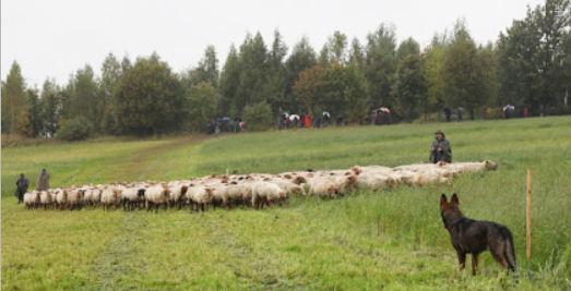 Er läuft also auf Kommando des Schäfers an der Herde vorbei (ohne die fressenden Tiere zu stören) und positioniert sich auch auf Kommando vor die Herde. Wenn die Schafe dann bei ihm ankommen, „kippt“ er sie wieder in die andere Richtung und sie fressen wieder zurück. Meistens läuft er den Schafen auf Kommando etwas entgegen.